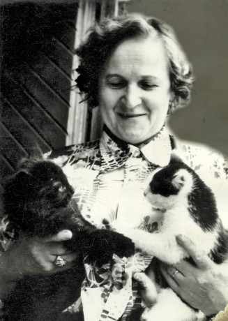Paní Pachnerová s koťátky_maželka Lva Pachnera